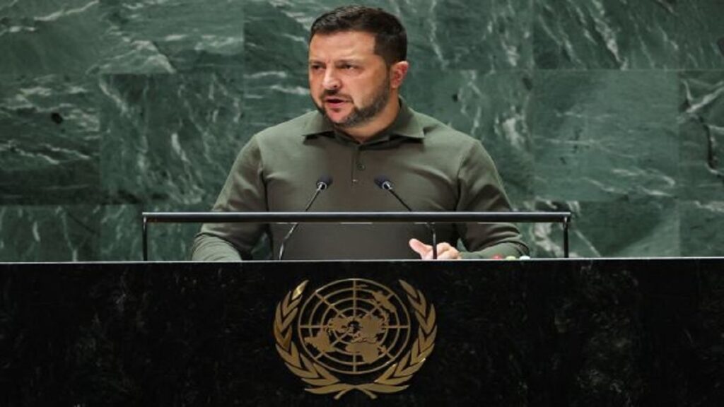 জাতিসংঘের ভাষণে জেলেনস্কি অভিযোগ করে বলেন, খাদ্যপণ্যের বিশ্ববাজারকে কুক্ষিগত করার চেষ্টা করছে পুতিন সরকার। ইউক্রেনীয় শিশুদের অপহরণের জন্যেও মস্কোকে দায়ী করেন জেলেনস্কি।