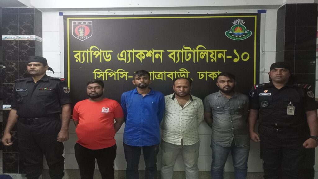 এ সময় তাদের কাছ থেকে চাঁদাবাজির নগদ ১১ হাজার ৮০০ টাকা উদ্ধার করা হয়। বিকেলে সংবাদ বিজ্ঞপ্তিতে এই তথ্য জানায় র্যাব-১০।
