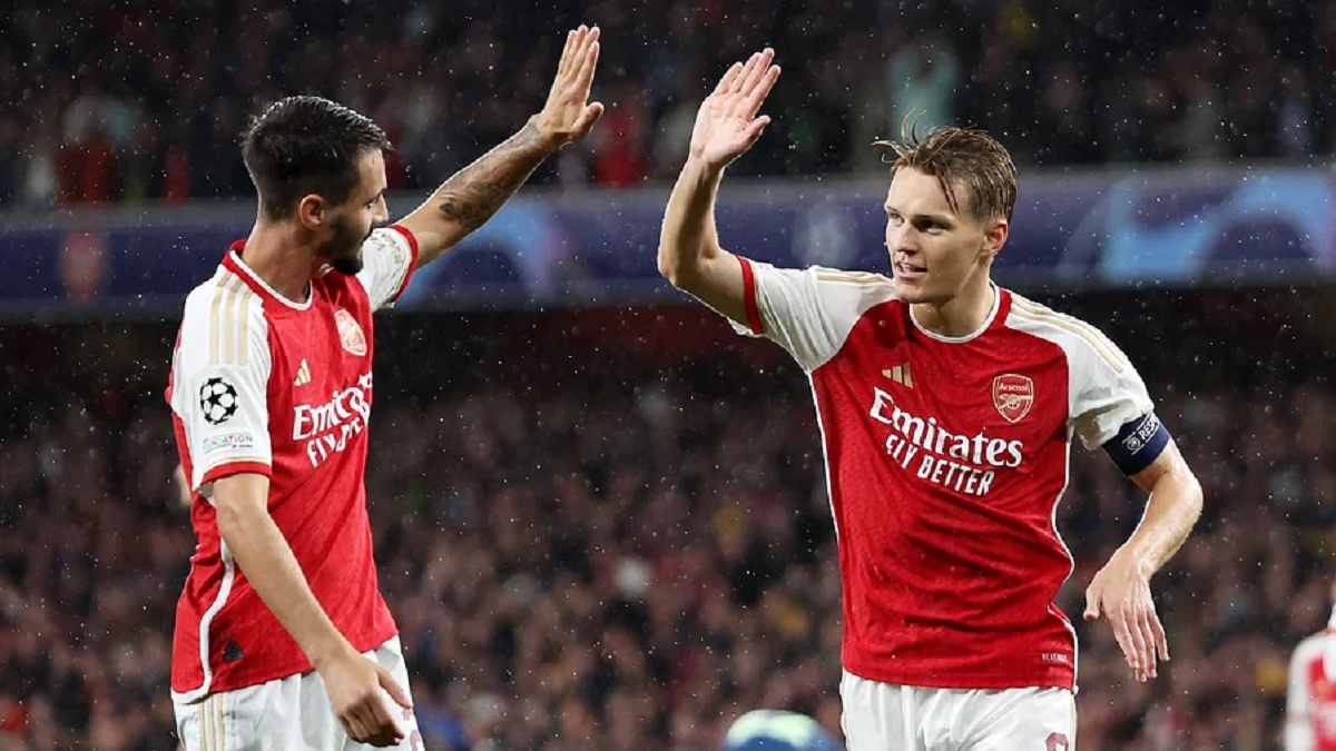 ‘বি’ গ্রুপের ম্যাচে পিএসভি আইনদোভেনকে উড়িয়ে দিয়েছে ইংলিশ জায়ান্ট আর্সেনাল। অ্যামিরেটস স্টেডিয়ামে 8 মিনিটে বুকায়ো সাকার গোলে লিড নেয় গানাররা। ডাচ প্রতিপক্ষের জাল লক্ষ্যভেদ করে ২০ মিনিটে ব্যবধান দ্বিগুন করেন ট্রোসার্ড। আর ৩৮ মিনিটে গ্যাব্রিয়েল হেসুসও স্কোর শিটে নাম তুললে ৩-০’র লিড নিয়ে প্রথমার্ধ শেষ করে আর্সেনাল। ৭০ মিনিটে অধিনায়ক মার্টিন ওডেগার্ডও গোল উৎসবে যোগ দিলে ৪-০’তে জয় নিশ্চিত করে গানাররা।