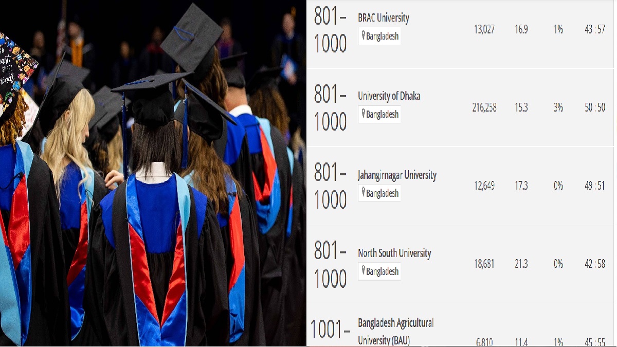 বুধবার (২৭ সেপ্টেম্বর) প্রকাশিত এ তালিকায় বাংলাদেশের মোট ৯টি বিশ্ববিদ্যালয় স্থান পেয়েছে। এর মধ্যে ৮০১ থেকে ১০০০ এর মধ্যে আছে দেশের ৪ বিশ্ববিদ্যালয়। এগুলো হলো, ব্র্যাক ইউনিভার্সিটি, ঢাকা বিশ্ববিদ্যালয়, জাহাঙ্গীরনগর বিশ্ববিদ্যালয় ও নর্থ সাউথ ইউনিভার্সিটি।
