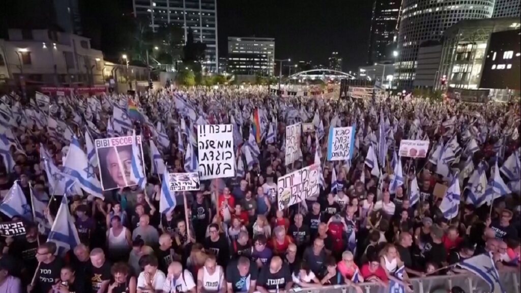 বিচার বিভাগ সংস্কার পরিকল্পনার বিরুদ্ধে আবারও উত্তপ্ত হলো ইসরায়েলের রাজপথ। শনিবার (৩০ সেপ্টেম্বর) তেল আবিবের রাস্তায় জড়ো হয় হাজার হাজার মানুষ। খবর রয়টার্সের।
