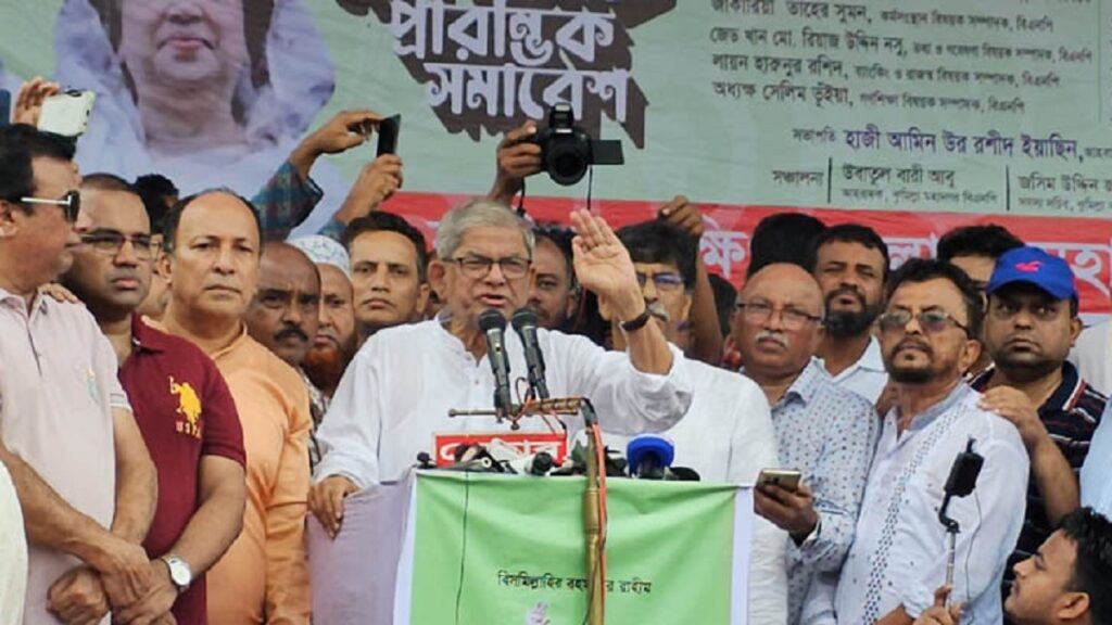 সমাবেশে মির্জা ফখরুল বলেন, আবারও একতরফা নির্বাচনের চেষ্টা করছে আওয়ামী লীগ। এবার বিনা ভোটে আর নির্বাচন হতে দেবে না জনগণ। খালেদা জিয়াকে অন্যায়ভাবে আটক রেখে চিকিৎসার সুযোগ দিচ্ছে না উল্লেখ করে বিএনপি মহাসচিব বলেন, তিনি সুস্থ হয়ে জনগণের সামনে দাঁড়ালে সরকার এক মুুহূর্তও টিকতে পারবে না।