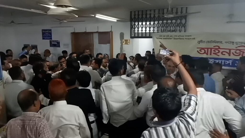 ময়মনসিংহে বিএনপি সমর্থিত আইনজীবী এবং আওয়ামী লীগ সমর্থিত আইনজীবীদের মধ্যে হট্টগোল হয়েছে।