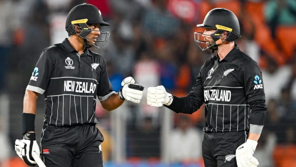 বিশ্বকাপের উদ্বোধনী ম্যাচে টসে হেরে আগে ব্যাটিংয়ে নেমে জো রুটের ৭৭ রানের ইনিংসের উপর ভর করে নির্ধারিত ৫০ ওভার শেষে ৯ উইকেট হারিয়ে ২৮২ রান তুলে ইংল্যান্ড। জবাবে ব্যাট করতে নেমে শুরুতেই উইল ইয়াং সাজঘরে ফিরলেও ইংলিশ বোলারদের উপর রীতিমতো ঝড় তুলে নিউজিল্যান্ডের দুই ব্যাটার ডেভন কনওয়ে ও রাচিন রবীন্দ্র। এই দুই বাঁহাতি ব্যাটারের জোড়া সেঞ্চুরিতে জয়ের সুভাস পাচ্ছে কিউইরা।