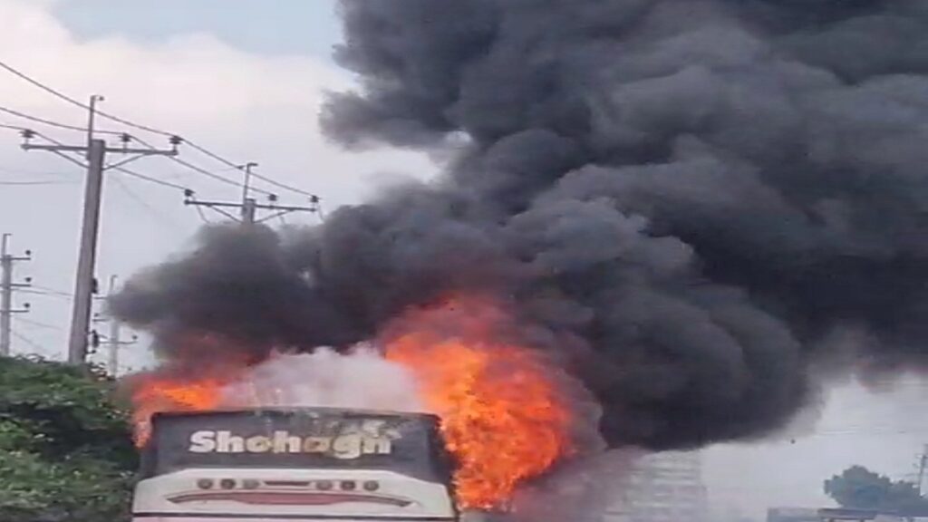 গাড়িরচালক ও যাত্রীরা জানান, রোববার বেলা ১১টার দিকে রাজধানীর কমলাপুর থেকে ২৫ জন যাত্রী নিয়ে সোহাগ পরিবহনের একটি বাস ব্রাহ্মণবাড়িয়ার উদ্দেশে রওনা হয়। দুপুর ১২টার দিকে বাসটি ঢাকা-সিলেট মহাসড়কের কর্নগোপ এলাকায় পৌঁছালে হঠাৎ গাড়ির পিছনের দিকে আগুন জ্বলে ওঠে। এসময় চালক গাড়িটি সড়কের পাশে থামালে নিরাপদে নেমে আসেন যাত্রীরা।