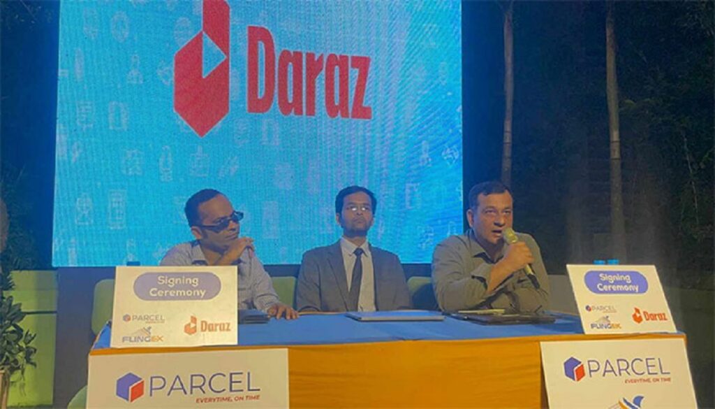 অনলাইন ডেলিভারি কোম্পানি ফ্লিংএক্সের সঙ্গে চুক্তি স্বাক্ষর হয়েছে ই-কমার্স প্ল্যাটফর্ম দারাজ বাংলাদেশের। সোমবার (৯ অক্টোবর) রাজধানীর বনানীর একটি রেস্টুরেন্টে এ চুক্তি সম্পন্ন হয়। ফ্লিংএক্সের পক্ষ থেকে চুক্তি স্বাক্ষর করেন প্রতিষ্ঠানটির সিইও আসিফ ইকবাল।