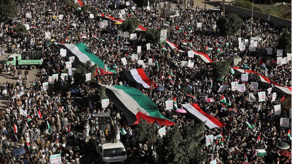 ইসরায়েলে হামাসের অভিযান ‘আল আকসা ফ্লাডের’ সমর্থন এবং তেলআবিবের হামলার প্রতিবাদে মুসলিম বিশ্ব বিক্ষোভের ডাক দেয়। শুক্রবার হাজার হাজার মানুষ ফিলিস্তিনিদের প্রতি সংহতি জানাতে রাস্তায় নেমে আসে। জুমার নামাজের পর ফিলিস্তিনের প্রতি সংহতি জানাতে রাস্তায় নামে হামাসের সবচেয়ে বড় সমর্থক, ইরানের হাজার হাজার মানুষ। এ সময় ইসরায়েলের পাশপাশি যুক্তরাষ্ট্র বিরোধী স্লোগানো দেয় তারা। পোড়ানো হয় দুই দেশের পতাকাও। শুক্রবার (১৩ অক্টোবর) এক প্রতিবেদনে এই তথ্য জানিয়েছে সংবাদমাধ্যম আল জাজিরা।