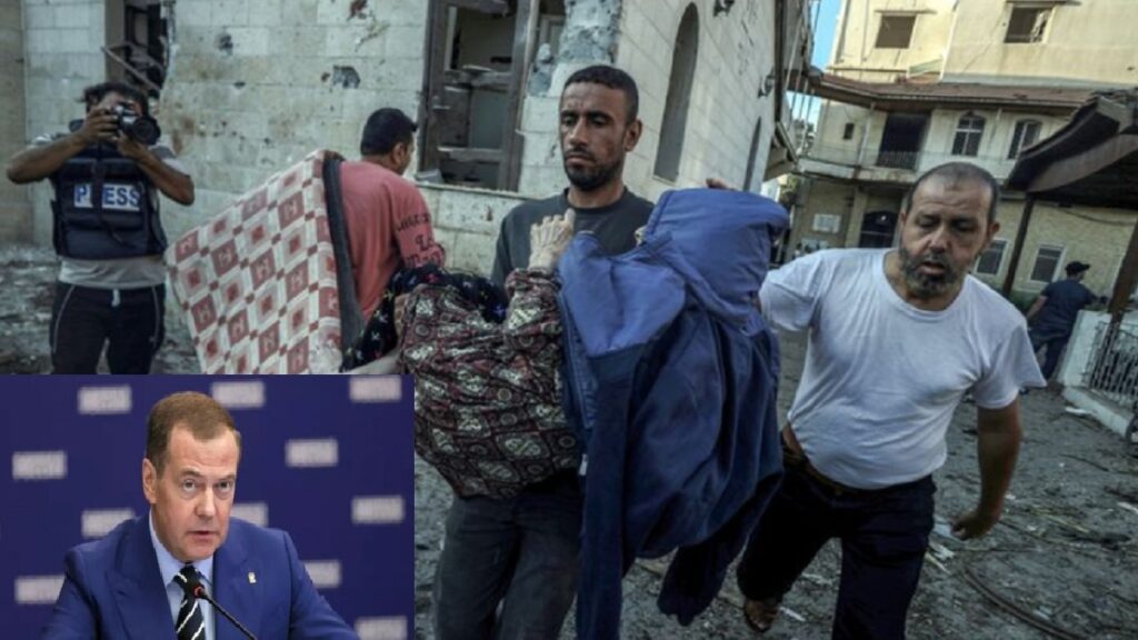 মেদভেদেভ তার ব্যক্তিগত টেলিগ্রাম চ্যানেলে লেখেন, গাজা উপত্যকার একটি হাসপাতালে জঘন্য হামলা নিঃসন্দেহে একটি যুদ্ধাপরাধ। এর জন্য চূড়ান্ত দায়ভার তাদের কাঁধে বর্তায় যারা বিভিন্ন মহাদেশের বিভিন্ন দেশে যুদ্ধের জন্য নিষ্ঠুরভাবে লাভবান হচ্ছে, যেমন যুক্তরাষ্ট্র।