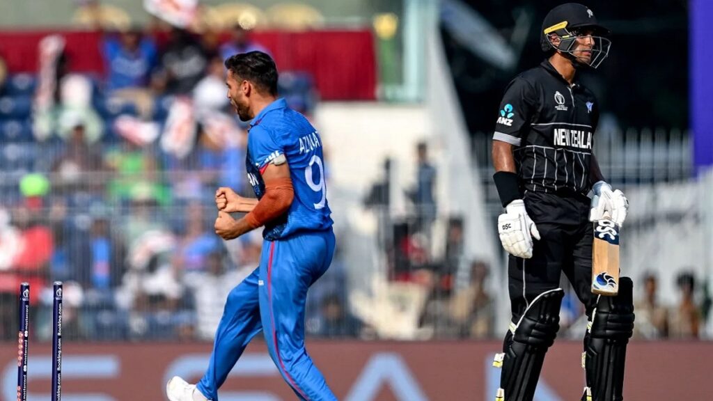 বিশ্বকাপে নিজেদের চতুর্থ ম্যাচে আফগানিস্তানের বিপক্ষে আগে ব্যাট করতে নেমে ১১০ রান তুলতেই ৪ উইকেট হারিয়ে চাপে পড়েছে নিউজিল্যান্ড। শুরুতে ডেভন কনওয়ে ফিরলেও রাচিন রবীন্দ্রকে নিয়ে বড় সংগ্রহের দিকে ছুটছিল কিউইরা। তবে আজমতউল্লাহ ওমরজাইয়ের বোলিং তোপে মাত্র ১ রানের ব্যবধানে ৩ উইকেট হারায় টম লাথামের দল।