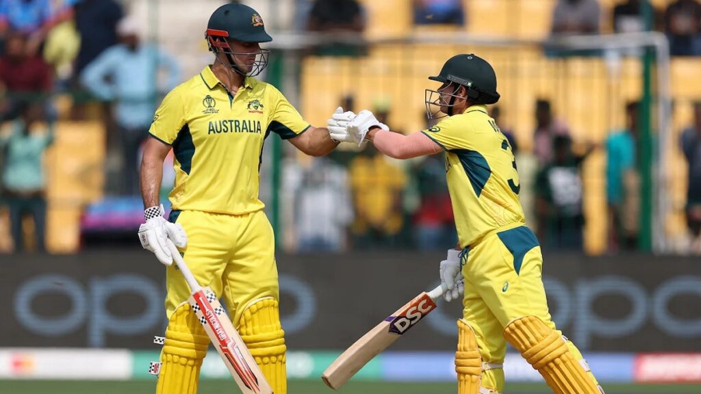 বিশ্বকাপে নিজেদের চতুর্থ ম্যাচে পাকিস্তানের বিপক্ষে আগে ব্যাট করতে নেমে দুই ওপেনার ডেভিড ওয়ার্নার ও মিচেল মার্শের ঝড়ো শুরুতে দিশেহারা হয়ে পড়েছে পাকিস্তানের বোলাররা। পাওয়ারপ্লে’তে পাকিস্তানি পেসারদের তুলোধুনো করে ৮৩ রান তুলে ওয়ার্নার-মার্শ জুটি। মাত্র ১২.৩ ওভারে শতরানের জুটি পেরিয়ে যান তারা। এই দুই ব্যাটারের ওপর ভর করে বড় সংগ্রহের পথে ছুটছে অজিরা। অন্যদিকে, উইকেটের খোঁজে রয়েছে বাবর আজমের দল।