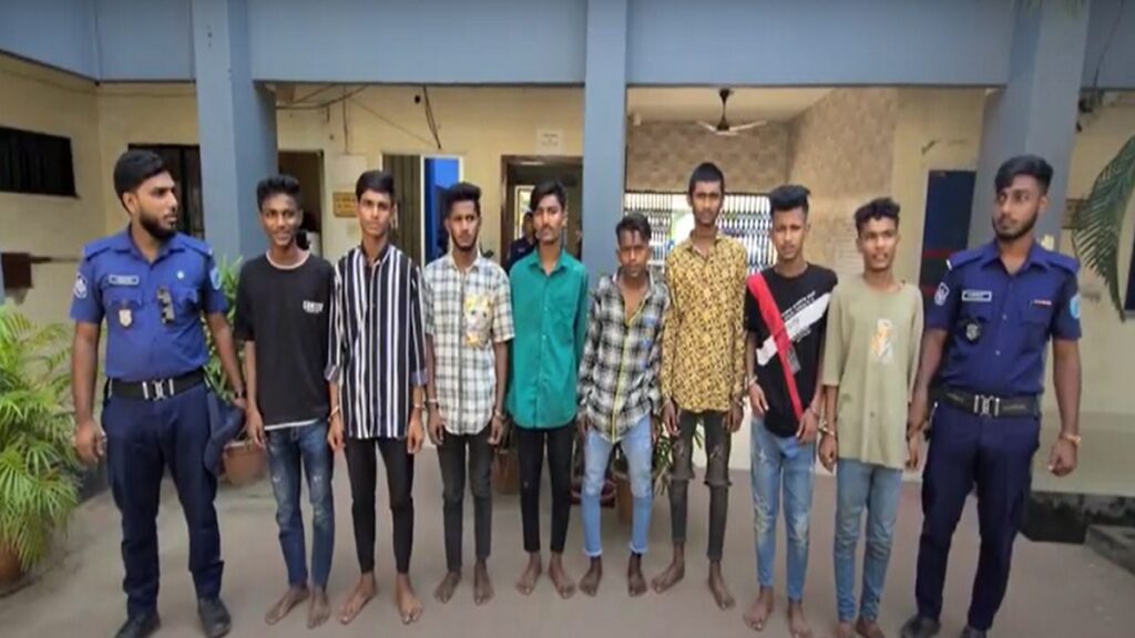 গ্রেফতারকৃতরা হলেন, ইমরান হোসেন (১৮), ইসমাইল হোসেন (১৭), আল আমিন (১৭), তাকবির হোসেন (১৭), মুন্না মোল্লা (১৬), জাবেদ মিয়া (১৬), আলাল (১৭) ও জিয়াদ (১৭)।
