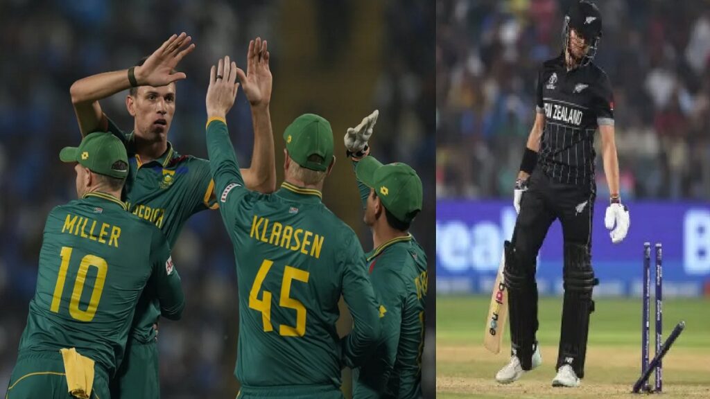 ৩৫৮ রানের লক্ষ্যে খেলতে নেমে শুরুতেই ডেভন কনওয়েকে হারিয়ে ধাক্কা খায় নিউজিল্যান্ড। ব্যক্তিগত ২ রান করে মার্কো ইয়ানসেনের বলে ক্যাচ আউট হন তিনি। শুরুর ধাক্কা সামলে ওঠার আগেই ব্যক্তিগত ৯ রানে আবারও ইয়ানসেনের শিকার হন রাচিন রবীন্দ্র। পাওয়ার প্লেতে দুই উইকেট হারিয়ে ধুঁকতে থাকা নিউজিল্যান্ড ইনিংসের এগারোতম ওভারে দলের আরেক ওপেনারকে হারায়। ব্যক্তিগত ৩৩ রান করে জেরাল্ড কোয়েৎজির শিকার হন উইল ইয়াং।