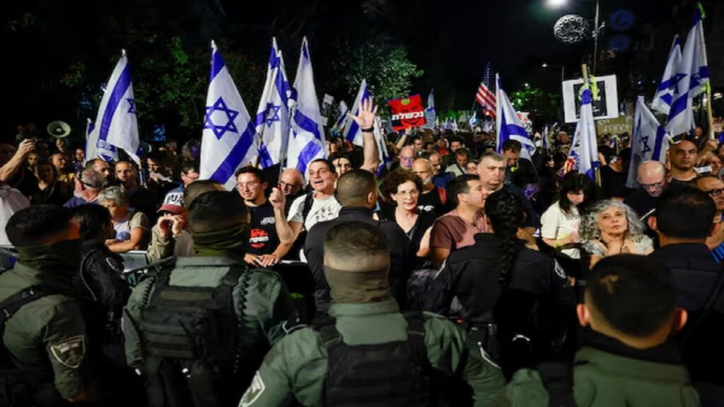 প্রধানমন্ত্রী বেনিয়ামিন নেতানিয়াহু’কে অপসারণের দাবিতে রাস্তায় হাজার হাজার ইসরায়েলি। কট্টর ডানপন্থি সরকারের ভুল পদক্ষেপে অস্থিরতা ছড়িয়েছে পুরো অঞ্চলে। রোববার (৫ নভেম্বর) এক প্রতিবেদনে এই তথ্য জানিয়েছে সংবাদমাধ্যম রয়টার্স।