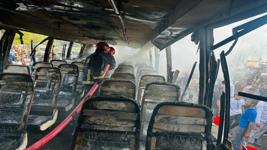 গুলিস্তানে একটি যাত্রীবাহী বাসে আগুন দিয়েছে দুর্বৃত্তরা। বিএনপি-জামায়াতের ডাকা ৪৮ ঘণ্টার অবরোধের দ্বিতীয় দিনে সোমবার (৬ নভেম্বর) দুপুরে এ ঘটনা ঘটে।