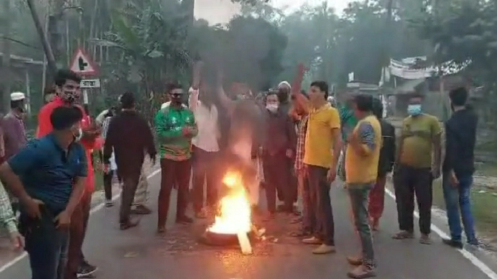 বুধবার (৮ নভেম্বর) সকাল সাড়ে ছয়টার দিকে নারায়ণগঞ্জের আড়াইহাজারে ঢাকা-সিলেট মহাসড়ক অবরোধ করা হয়। কান্দাইলের সড়কে আগুন জ্বালিয়ে বিক্ষোভ করে আউপজেলা বিএনপির নেতাকর্মীরা। এ সময় শেখ হাসিনার পদত্যাগ ও তত্ত্বাবধায়ক সরকারের দাবিতে স্লোগান দেন তারা।