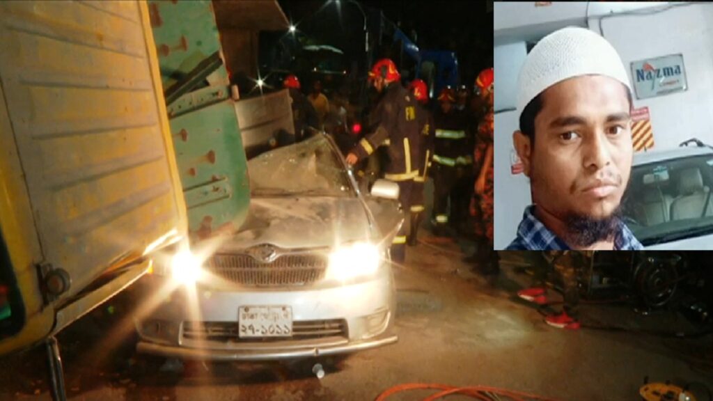 বেঁচে যাওয়া দুই যাত্রী জানান, চলন্ত প্রাইভেট কারের ওপর হঠাৎ ট্রাক এসে পড়ে। একজন কোনোমতে বের হলে উপস্থিত জনতা কাঁচ ভেঙে অপরজনকে উদ্ধার করে। কিন্তু প্রাণে বাঁচতে পারেননি চালক।