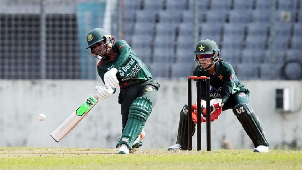 এর আগে, টসে জিতে ব্যাট করতে নেমে উদ্বোধনী জুটিতে ৬৫ রান যোগ করেন দুই ওপেনার সিদরা আমিন ও সাদাফ শামস। ৬১ বলে ৩১ রান করে নাহিদা আক্তারের বলে লেগ বিফোরের ফাঁদে পড়েন সাদাফ। সেখান থেকে মুনিবা আলিকে নিয়ে সংক্ষিপ্ত জুটি গড়ে তোলেন সিদরা। ৯৩ রানের মাথায় মুনিবাকে হারায় পাকিস্তান। এরপরই ঘুরে দাঁড়ায় বাংলাদেশ। একসময় ১২৮ রানে ৭ উইকেট খোয়ায় পাকিস্তান।