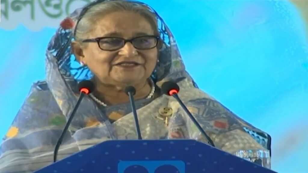 আওয়ামী লীগ সভাপতি বলেন, আমি শেখ মুজিবের মেয়ে। ক্ষমতার লোভে দেশের সম্পদ কারও হাতে তুলে দিতে আমি রাজি না। বাংলাদেশ আমাদের, এই দেশের উন্নয়ন আমরাই করবো। একজন এসে পরামর্শ দিবে তা মেনে নিবো না।