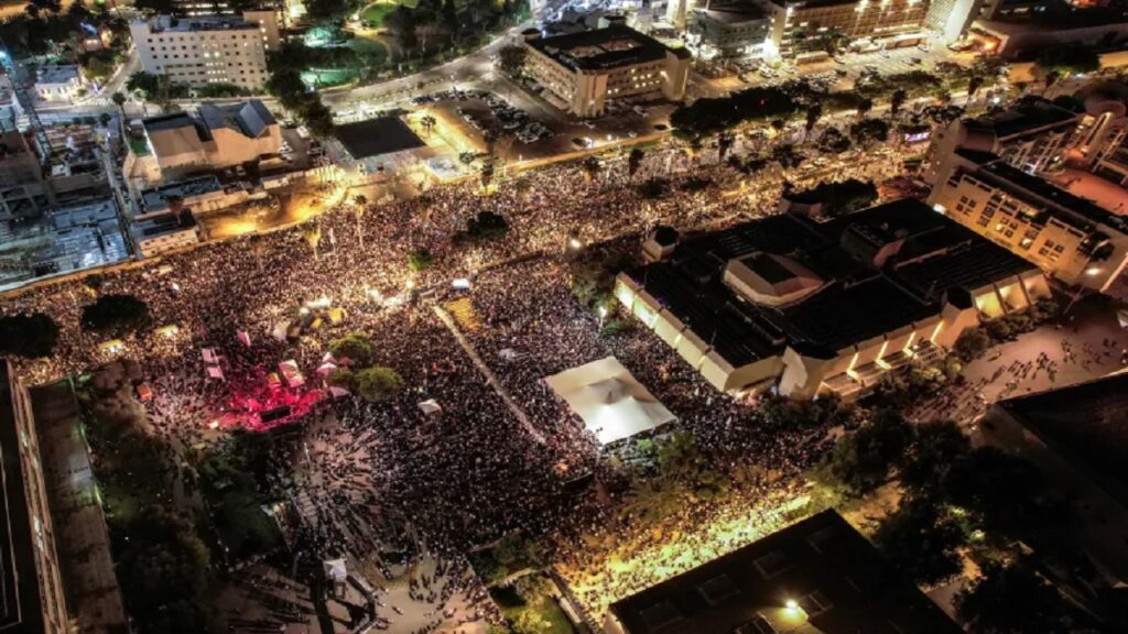 এ সময় জিম্মিদের স্বজনেরা বিক্ষোভে অংশ নেন। এক মাসের বেশি সময় পেরুনোর পরেও জিম্মিদের ফেরাতে ব্যর্থতার দায়ে নেতানিয়াহু সরকারের তীব্র সমালোচনা করেন তারা।