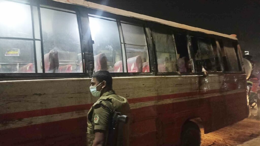 রাজধানীর মোহাম্মদপুর বেড়িবাঁধে প্রত্যয় পরিবহনের একটি যাত্রীবাহী বাসে আগুন দিয়েছে দুর্বৃত্তরা। রোববার (১২ নভেম্বর) রাত সোয়া ১০টার দিকে এ ঘটনা ঘটে।