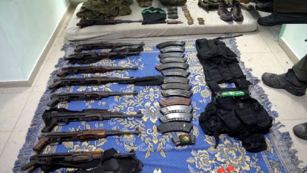 ওই কর্মকর্তার দাবি, এসব অস্ত্র ব্যবহার করতো হামাস। বুট, ইউনিফর্ম এবং ল্যাপটপসহ নানা প্রযুক্তির পণ্যও দেখান ওই ইহুদি সেনা। ভবনের নিরাপত্তা ক্যামেরাগুলো ঢেকে রাখা হয়েছে বলেও জানানো হয়।