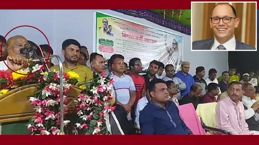ঢাকায় নিযুক্ত মার্কিন রাষ্ট্রদূত পিটার হাসকে বদমায়েশ উল্লেখ করে হত্যার হুমকি দিয়েছেন কক্সবাজারের মহেশখালী উপজেলা আওয়ামী লীগের জ্যেষ্ঠ সহসভাপতি ও হোয়ানক ইউনিয়ন পরিষদের সাবেক চেয়ারম্যান ফরিদুল আলম।