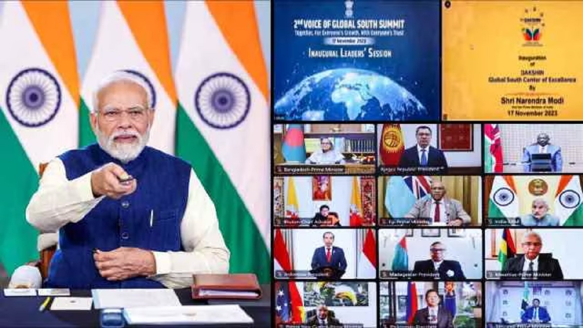 ভারতের প্রধানমন্ত্রী নরেন্দ্র মোদি ভিডিও কনফারেন্সের মাধ্যমে গ্লোবাল সাউথ সামিটের উদ্বোধনী অধিবেশনে যোগ দেন। ছবি: ইন্ডিয়ান এক্সপ্রেস।