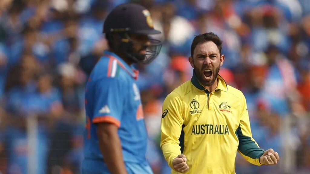 প্রথম ওভারে সাফল্য না পেলেও নিজের দ্বিতীয় ওভারে উইকেট এনে দেন ম্যাক্সওয়েল। ডানহাতি এই অফ স্পিনারের পরের ওভারে টানা দুই বলে ছক্কা এবং চার মারেন রোহিত। পরের বলে ডাউন দ্য উইকেটে এসে আবারও উড়িয়ে মারতে গিয়েছিলেন ভারতের অধিনায়ক। তবে ব্যাটে-বলে ঠিকঠাক না হওয়ায় ফিরে যেতে হয় হেডের দুর্দান্ত ক্যাচে। দারুণ ব্যাটিং করা রোহিতের ব্যাট থেকে এসেছে ৩১ বলে ৪৭ রান।