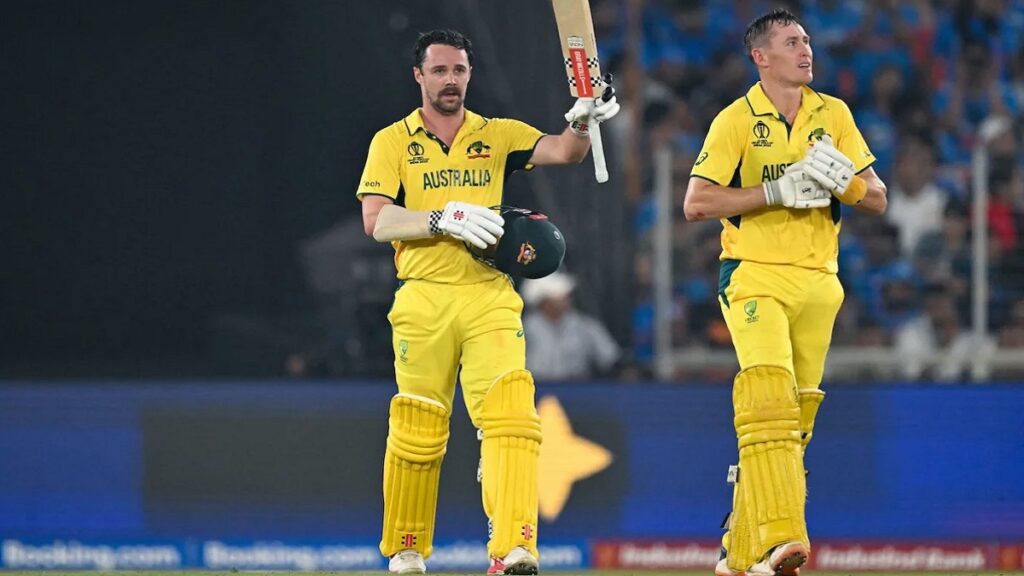 পঞ্চাশের আগে ৩ উইকেট হারিয়ে বিপাকেই পড়েছিল অস্ট্রেলিয়া। লাবুশেন ও হেডের জুটি খানিকটা স্বস্তি দেয় সফরকারীদের। লাবুশেন ধীরগতিতে রান করলেও হেড ছিলেন নিচের চেনা ছন্দেই। চাপের মুখে দাঁড়িয়ে শেষ পর্যন্ত হাফ সেঞ্চুরিও তুলে নেন হেড। কুলদীপ যাদবের বলে সিঙ্গেল নিয়ে ৫৮ বলে পঞ্চাশ ছুঁয়েছেন বাঁহাতি এই ওপেনার। হাফ সেঞ্চুরির পর ভারতের বোলারদের উপর চড়াও হতে থাকেন হেড। দারুণ ব্যাটিংয়ে সেঞ্চুরিও তুলে নিয়েছেন তিনি। ৯৫ বলে তিন অঙ্কের ম্যাজিক ফিগার স্পর্শ করেন হেড। দলকে ৩ রান দূরে রেখে সিরাজের বলে আউট হওয়ার আগে ১২০ বলে ১৫ চার ৬ ছক্কায় ১৩৭ রান করেন এই অজি বাঁহাতি ব্যাটার।