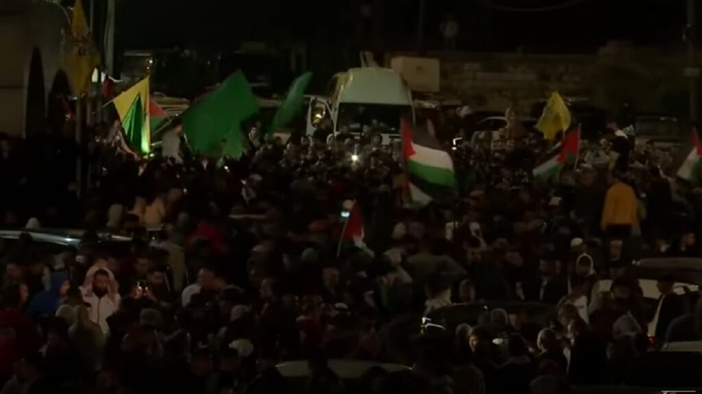 শুক্রবার (২৪ নভেম্বর) রাতে মুক্তি দেয়া হয় ইসরায়েলের কারাগারে থাকা বন্দি ফিলিস্তিনিদের। পরে কড়া নিরাপত্তায় তাদের পরিবারের কাছে ফিরিয়ে দেয়া হয়।