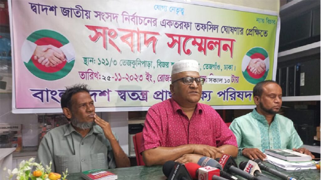 আগামী দ্বাদশ সংসদ নির্বাচনে অংশ না নেয়ার ঘোষণা দিয়েছে বাংলাদেশ স্বতন্ত্র প্রার্থী ঐক্য পরিষদ। আগামী নির্বাচন একতরফা হবে বলে দাবি করে সংগঠনটি জানায়, জনগণ তাদের ভোটাধিকার প্রয়োগ করতে পারবে না।