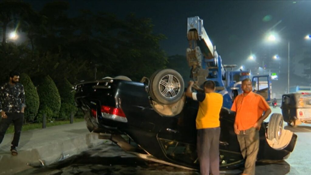 এর কয়েক ঘণ্টা পর ভোর সাড়ে ৪টায় খিলক্ষেত এলাকায় হয় আরেকটি দুর্ঘটনা। প্রত্যক্ষদর্শীরা জানান, বেপরোয়া গতি নিয়ে উত্তরার দিক থেকে আসার পথে নিয়ন্ত্রণ হারায় প্রাইভেটকারটি। এক পর্যায়ে, রাস্তার পাশে ফুটপাতে ধাক্কা লেগে সেটি ৫০ গজ দূরত্বে ছিটকে যায়।