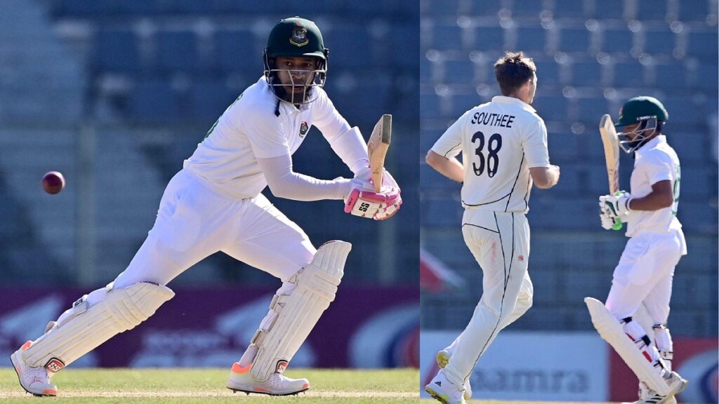 এর আগে তৃতীয় দিনে নিউজিল্যান্ডকে ৩১৭ রানে অলআউট করার পর ২ উইকেটে ১১১ রান তুলে টি ব্রেকে যায় বাংলাদেশ। তৃতীয় সেশনের শুরুতেই মোমিনুল হকের উইকেট হারিয়ে হোঁচট খায় টাইগারার। তবে দলকে খুব একটা বিপদে পড়তে দেননি অধিনায়ক নাজমুল হোসেন শান্ত ও মুশফিকুর রহিম। দু’জনের অবিচ্ছিন্ন ৯৬ রানের জুটিতে ২০৫ রানে এগিয়ে থেকে তৃতীয় দিনের খেলা শেষ করে বাংলাদেশ।