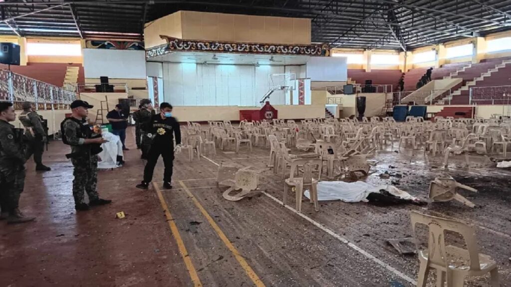 ফিলিপাইনের এক ক্যাথলিক সমাবেশে বিস্ফোরণের ঘটনায় কমপক্ষে চার জনের মৃত্যু হয়েছে। আহত প্রায় অর্ধশত। এদের মধ্যে ৯ জনের অবস্থা আশঙ্কাজনক। রোববার (৩ ডিসেম্বর) এক প্রতিবেদনে যুক্তরাষ্ট্রের সংবাদ সংস্থা রয়টার্স এ খবর জানায়। প্রতিবেদনে বলা হয়, রোববার সকালে দক্ষিণ ফিলিপাইনে মারাওয়ি’র মিন্দানাও স্টেট ইউনিভার্সিটির (এমএসইউ) একটি জিমনেশিয়ামে হয় এ ঘটনা।স্থানীয় সশস্ত্র গোষ্ঠী ‘দৌলাহ ইসলামিয়া মওত’ এ ঘটনার সাথে জড়িত থাকতে পারে বলে প্রাথমিকভাবে ধারণা করছে পুলিশ।গত শুক্রবার, গোষ্ঠীটির সাথে ব্যাপক সংঘর্ষ হয় পুলিশের। এতে নিহত হয় সংগঠনটির ১১ জন সদস্য। তারই প্রতিশোধস্বরূপ হতে পারে এই হামলা।এদিকে, এমন হামলাকে বিবেকহীন ও জঘন্য বলে অভিহিত করেছেন দেশটির প্রেসিডেন্ট। হামলার পেছনে বিদেশী জঙ্গি সংগঠনগুলোর মদদ থাকতে পারে বলেও মন্তব্য করেন তিনি।