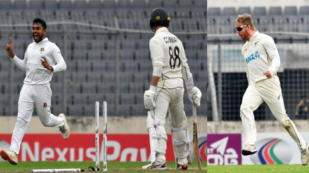 ব্যাটিংয়ে নেমে সাবধানী শুরু করে দুই কিউই ওপেনার টম ল্যাথাম ও ডেভন কনওয়ে। বাংলাদেশ প্রথম আঘাত হানে ইনিংসের ষষ্ঠ ওভারে। ওপেনার কনওয়েকে মাত্র ১১ রানেই বোল্ড করে সাজঘরে পাঠান মিরাজ। পরের ওভারেই আরেক ওপেনার টম ল্যাথামকেও ৪ রানে ফেরত পাঠান আরেক স্পিনার তাইজুল। ২২ রানে ২ উইকেট হারিয়ে ধুঁকতে থাকে নিউজিল্যান্ড।