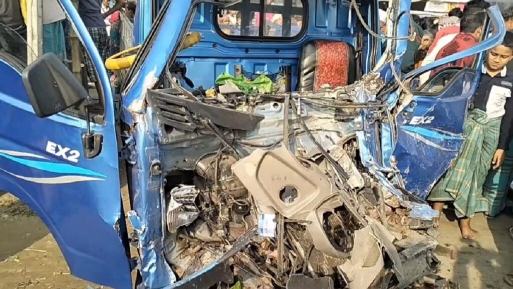 পুলিশ জানায়, প্রথমে ঢাকামুখী একটি বাসের সাথে পিকআপ ভ্যানের মুখোমুখি সংঘর্ষ হয়। পরে পিকআপের সাথে ধাক্কা লাগে একটি সিএনজি অটোরিকশার। এতে ঘটনাস্থলেই পিকআপ ভ্যানের আরোহী আনোয়ার ও শামসুল হক মারা যায়। এছাড়া গুরুতর আহত অবস্থায় পিকআপের চালক সুজা মণ্ডলকে ময়মনসিংহ মেডিকেলে ভর্তি করা হয়। পরবর্তীতে চিকিৎসাধীন অবস্থায় তার মৃত্যু হয়। দুর্ঘটনার পরপরই বাসের চালক ও হেলপার পালিয়ে যায়।