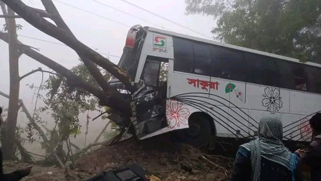অপরদিকে নিয়ন্ত্রন হারায় বাসটি। মহাসড়কের পাশে একটি গাছের সাথে আছড়ে পড়ে। এতে বাসের ৫ যাত্রী আহত হয়। তাদেরকে প্রাথমিক চিকিৎসা দেয়া হয়েছে।