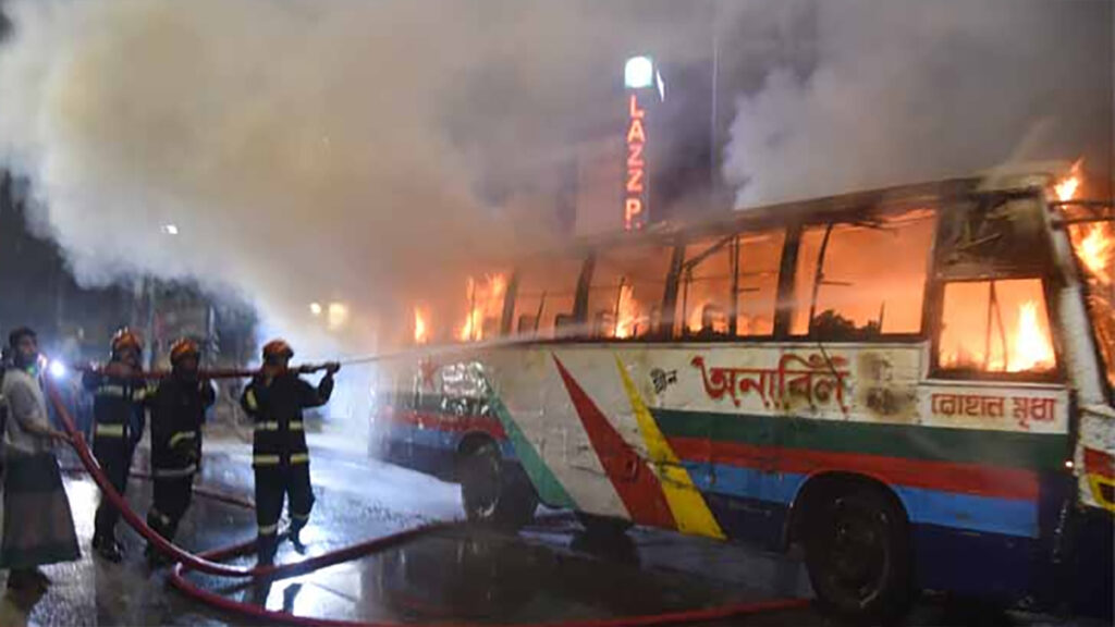 এর আগে, রোববার দুপুরে রাজধানীর পোস্তগোলায় রাইদা পরিবহনের একটি বাসে আগুন দেয় দুর্বৃত্তরা। এছাড়া, শনিবার (২৩ ডিসেম্বর) রাজধানীতে ৩টি যাত্রীবাহী বাসে আগুন দেয় দুর্বৃত্তরা।