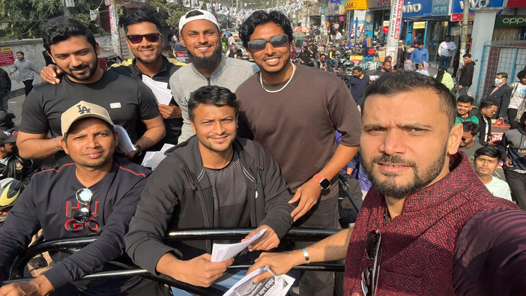 এ সময় গাড়ি থেকে লিফলেট বিতরণ করে নৌকা প্রতীকে সাকিবের জন্য ভোট চান মাশরাফী বিন মোর্তজা। ঐতিহাসিক নোমানী ময়দান থেকে শুরু হয়ে শহরের চৌরঙ্গী মোড় ঘুরে ভায়না মোড় গিয়ে শেষ হয় তাদের প্রচারণা। এছাড়া আওয়ামী নেতাকর্মীদের সাথেও শুভেচ্ছা বিনিময় করেন মাশরাফী।