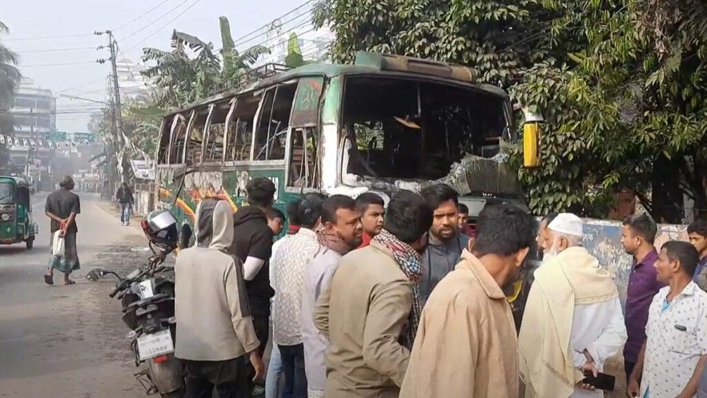 পরে আগুন ছড়িয়ে পরলে দুজনেই বাস থেকে নেমে পড়েন। এরপর ফায়ার সার্ভিস কর্মীরা ঘটনাস্থলে গিয়ে আগুন নিয়ন্ত্রণে আনে। তবে বাস মালিক সম্ভু চন্দ্র ঘোষের দাবি, এই আগুন দিয়েছে দুর্বৃত্তরা।
