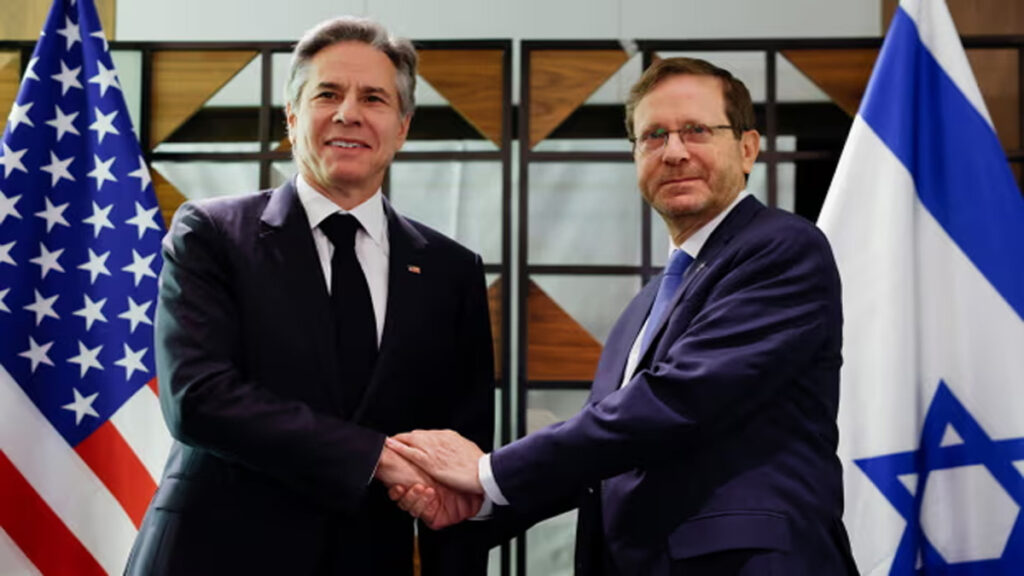 গোলমেলে পরিস্থিতিতে ফের মধ্যপ্রাচ্য সফর করেছেন মার্কিন পররাষ্ট্রমন্ত্রী অ্যান্টনি ব্লিনকেন। চলমান যুদ্ধ নিয়ে আলোচনা করেছেন জর্ডান, কাতার, সংযুক্ত আরব আমিরাত, সৌদি আরবের নেতাদের সাথে। অবশ্য তার কণ্ঠে ছিলো ইসরায়েলপন্থী সুর। তিনি বলেন, সবাই চায় যুদ্ধ থামুক। তবে সর্বাগ্রে নিশ্চিত করতে হবে ইসরায়েলের নিরাপত্তা। পাশাপাশি নিরপরাধ গাজাবাসীর ওপরও হামলা বন্ধ করতে হবে। গাজা ও পশ্চীম তীরে একক সরকার ব্যবস্থা দরকার। তাহলেই স্বাধীন রাষ্ট্র হিসেবে ফিলিস্তিন গঠন করা সম্ভব। এগুলো বাস্তবায়ন এতোটা সহজ নয় তবে লক্ষ্যে পৌঁছাতে ঐক্যের প্রয়োজন বলে জানান তিনি।