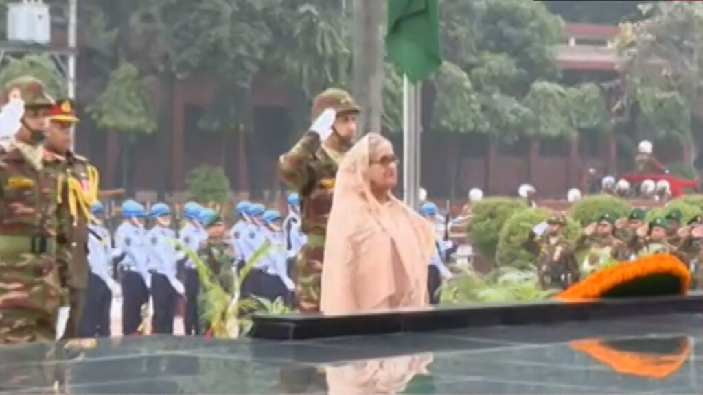 এর আগে, সকালে প্রধানমন্ত্রী শিখা অনির্বাণে পৌঁছালে তাকে স্বাগত জানান তিন বাহিনীর প্রধান ও সশস্ত্র বাহিনী বিভাগের প্রিন্সিপাল স্টাফ অফিসারগণ। সেখানে সশস্ত্র বাহিনীর একটি চৌকস দল প্রধানমন্ত্রী শেখ হাসিনাকে গার্ড অব অনার প্রদান করেন। শ্রদ্ধা নিবেদনের সময় সশস্ত্র বাহিনীর ঊর্ধ্বতন কর্মকর্তারা উপস্থিত ছিলেন।