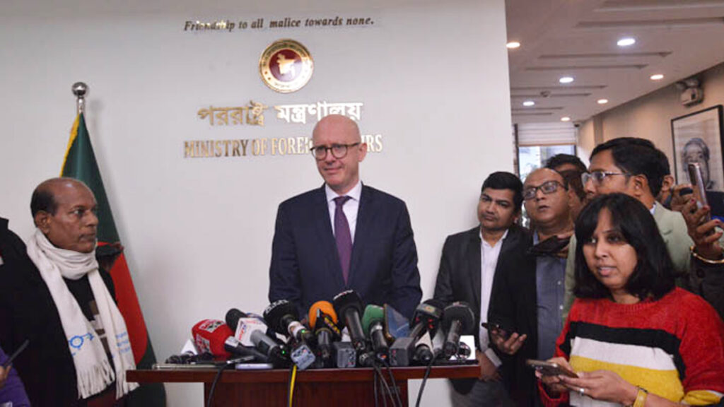 বুধবার (১৭ জানুয়ারি) দুপুরে পররাষ্ট্রমন্ত্রী ড. হাছান মাহমুদের সঙ্গে সৌজন্য সাক্ষাৎ করতে মন্ত্রণালয়ে যান ইইউ রাষ্ট্রদূত। পরে সাংবাদিকদের এ কথা জানান তিনি।