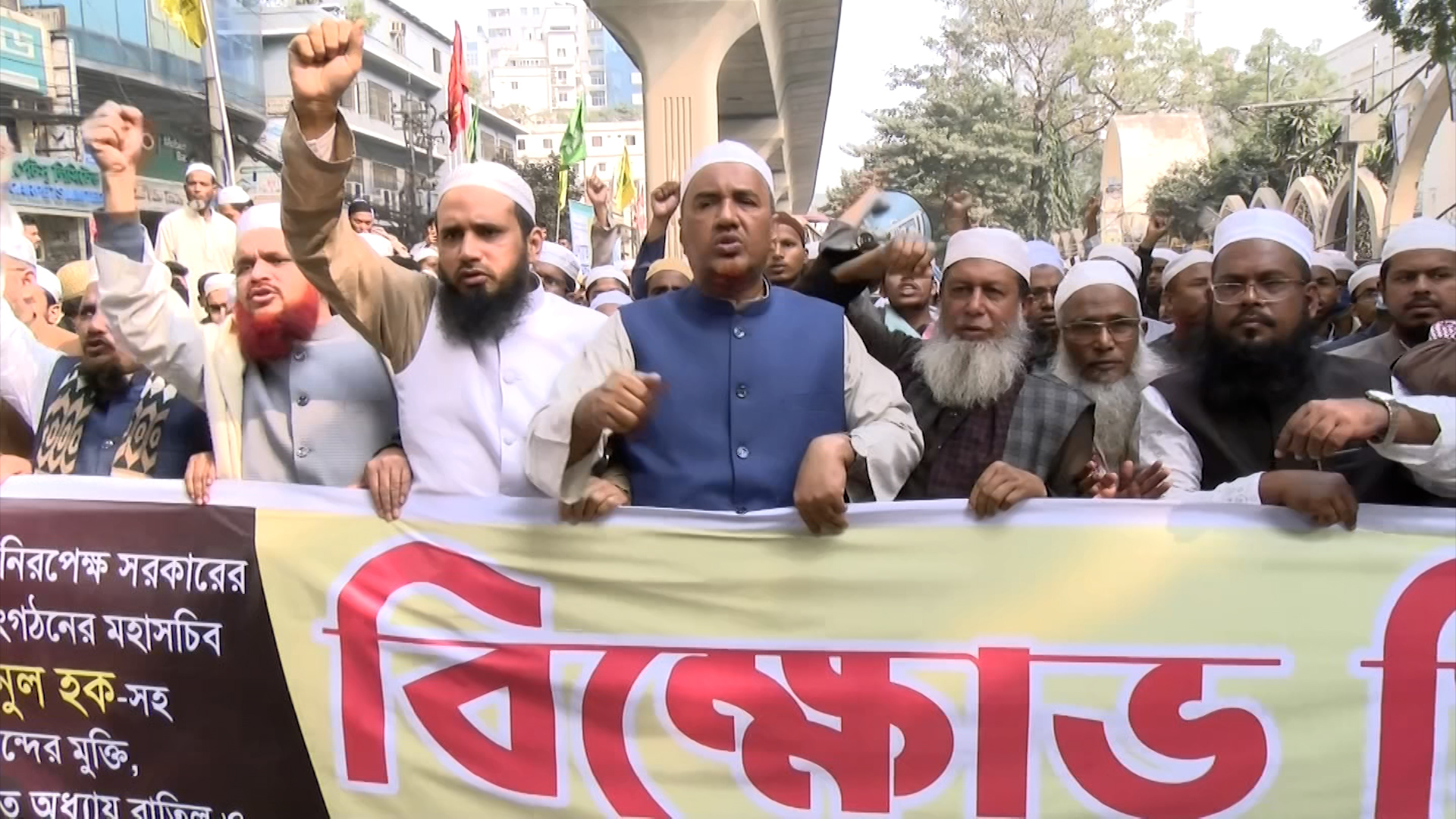শুক্রবার (১৯ জানুয়ারি) জাতীয় মসজিদ বাইতুল মোকাররমের উত্তর গেটে জুম্মার নামাজের পর বিক্ষোভ মিছিলে এমন দাবি জানায় দলটি। ডামি নির্বাচন বাতিল করে নিরপেক্ষ সরকারের অধীনে নতুন নির্বাচনের দাবি জানিয়েছেন দলটির নেতাকর্মীরা। একই সঙ্গে সংগঠনটির মহসচিব মাওলানা মামুনুল হকসহ সকল রাজবন্দীদের মুক্তি না দিলে দেশে জনবিস্ফোরণ ঘটানোর হুঁশিয়ারি দেন তারা।