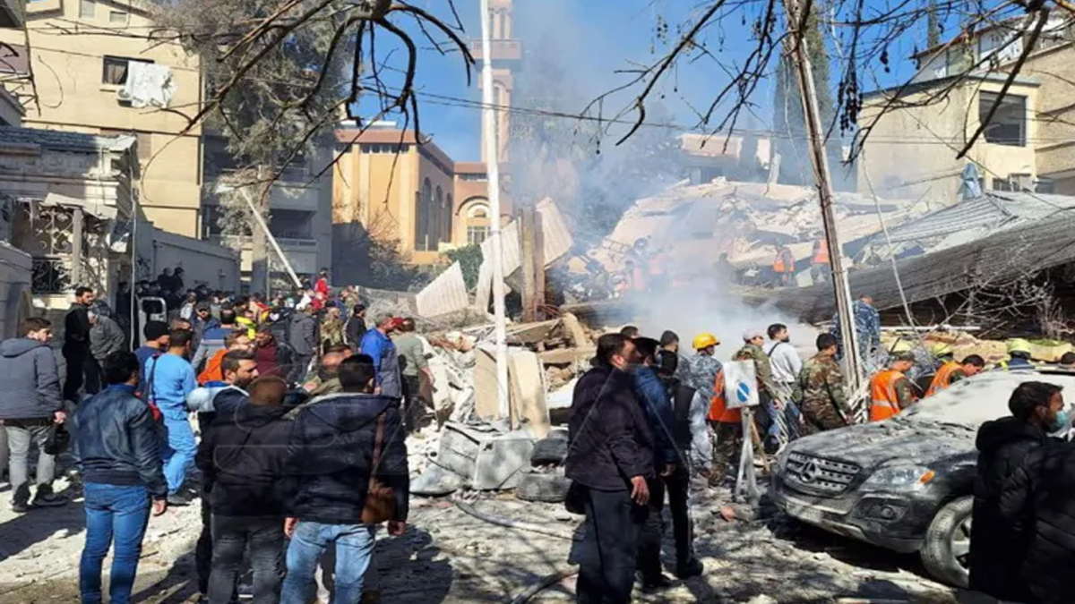 সিরিয়ার রাজধানী দামেস্কে গতকাল ইসরায়েলি হামলায় বিধ্বস্ত ভবনে হতাহতদের বের করে আনতে তৎপরতা চলে। ছবি : আল জাজিরা
