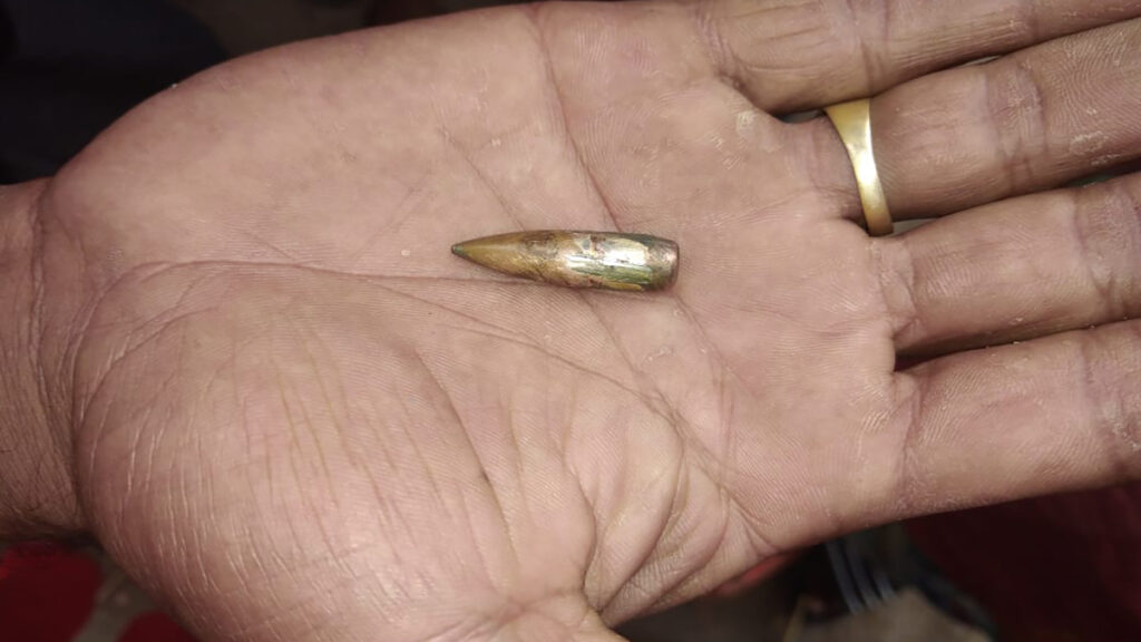 মিয়ানমারের আরকান আর্মি ও দেশটির সেনাবাহিনীর মধ্যে চলা গোলাগুলির দু’টি বুলেট এসে পড়েছে কক্সবাজার জেলার টেকনাফের হোয়াইক্যং এলাকায়। শনিবার ( ২৭ জানুয়ারি) বিকেল সাড়ে তিনটার দিকে স্থানীয় ১ নম্বর ওয়ার্ডের উলুবনিয়ার নুরুল ইসলামের বসতঘরে এসে পড়ে বুলেটটি। এতে এলাকায় আতঙ্ক ছড়িয়ে পড়েছে।