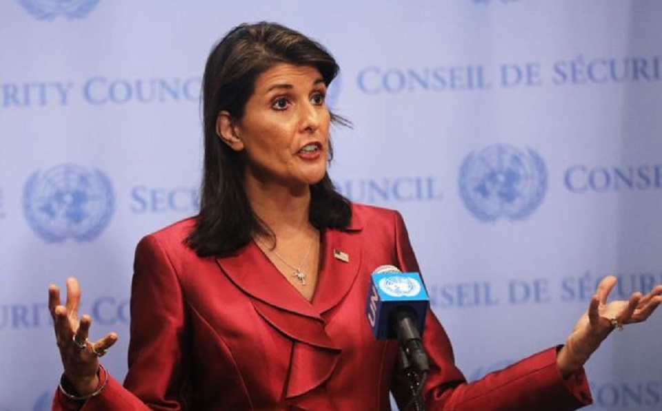 এর আগে হোয়াইট হাউজের প্রেস সেক্রেটারি সারাহ সেন্ডার্স টুইট বার্তায় বলেন, প্রেসিডেন্ট ট্রাম্প ও রাষ্ট্রদূত নিকি হ্যালি ওভালের কার্যালয়ে সকাল সাড়ে ১০টায় বৈঠক করবেন।