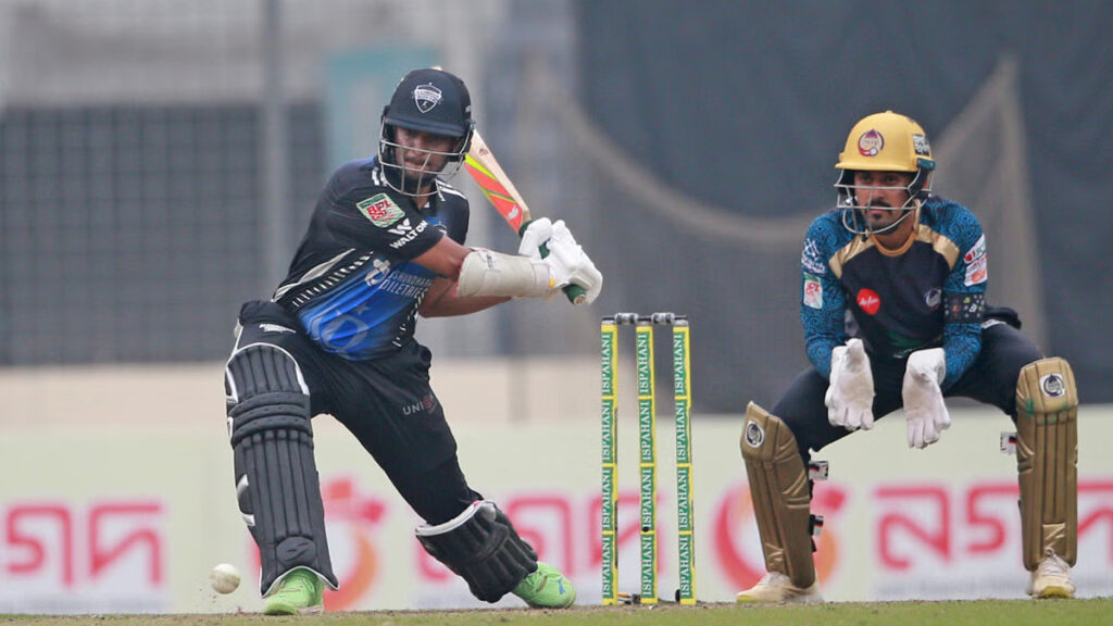 জবাবে ব্যাট করতে নেমে শুরুতেই হোঁচট খায় ঢাকা। দলীয় ৪ রানে টপ অর্ডারের ২ ব্যাটারকে হারায় তারা। মেহেদী হাসানের দুর্দান্ত বোলিং এ সাজঘরে ফেরেন সাব্বির হোসেন ও সাইম আইয়ুব। অ্যালেক্স রসকে বিদায় করে ৩১ রানের জুটি ভাঙেন সাকিব আল হাসান।