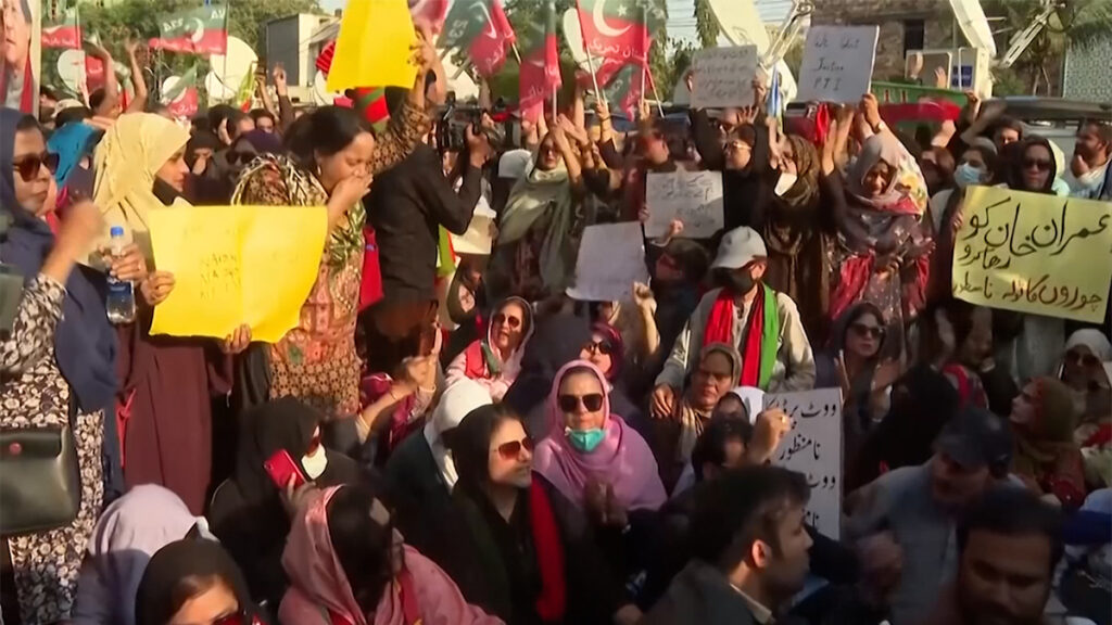 এ সময়, জাতীয় নির্বাচনে ভোটের ফল পাল্টে দেয়ার অভিযোগ করেন তারা। দলীয় পতাকা নিয়ে নির্বাচন কমিশনের বিরুদ্ধে শ্লোগান দেন পিটিআই সমর্থকরা। ভোট চুরির অভিযোগ তুলে ফলাফল মানা হবে না বলেও শ্লোগান দেন তারা।
