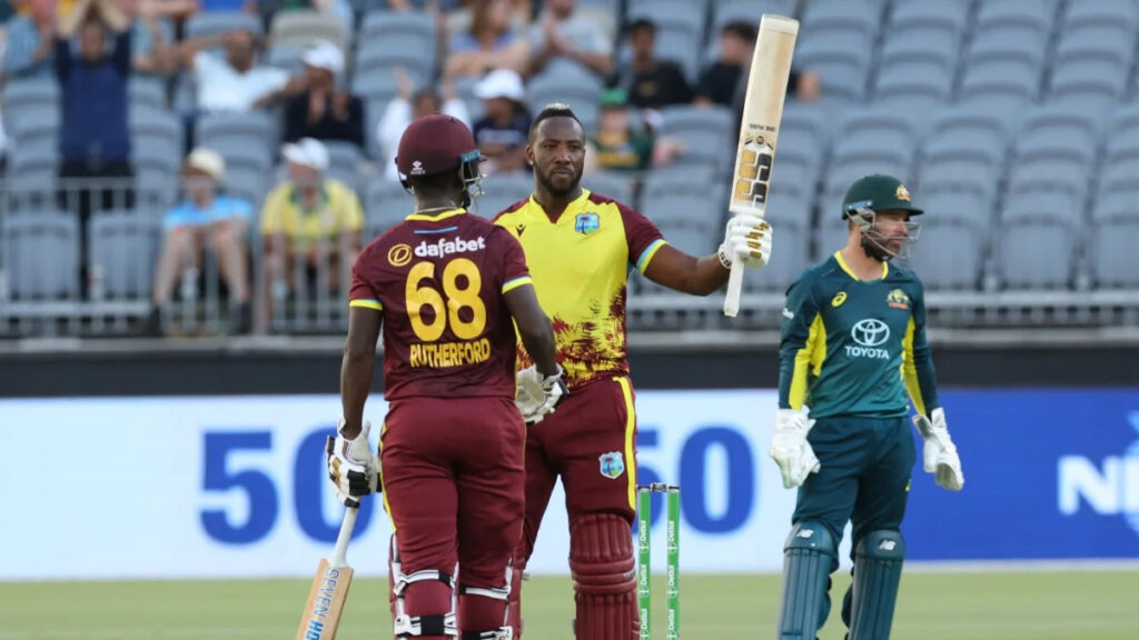 চতুর্থ উইকেট জুটিতে রোস্টন চেজ ও অধিনায়ক রভম্যান পাওয়েল প্রতিরোধ গড়েন। ৩০ বলের জুটিতে গড়েন ৫৫ রান। এরপর ফের ছন্দপতন। ৭ রানের মধ্যে সাজঘরে ফেরেন দু’জন। ২০ বলে ৩ চার ও ২ ছক্কায় ৩৭ রানের ইনিংস খেলা চেজকে বোল্ড করেন লেগ স্পিনার অ্যাডাম জ্যাম্পা। রভম্যান ১৪ বলে ৩ চারে ২১ রান করে শিকার হন অ্যারন হার্ডির।